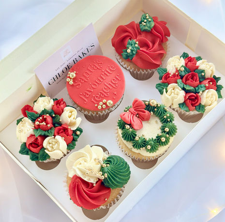 Introducing our Christmas bespoke cupcake range for 2025. Treat your teachers to our custom Christmas cupcakes this year, topped with luscious hand-piped buttercream and a sprinkle of gold to sprinkle some holiday magic!