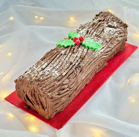 Christmas Brownie Yule Log - Treat yourself to our luxurious brownie Yule log this year. Our popular double chocolate Yule log rolled with your choice of filling, decorated with silky smooth Belgian chocolate ganache and fondant holly.